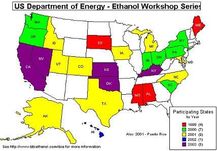 Note: All states that have participated in the US DOE Ethanol Workshop Series are listed on the column on the left of this page. State information is updated as often as received.